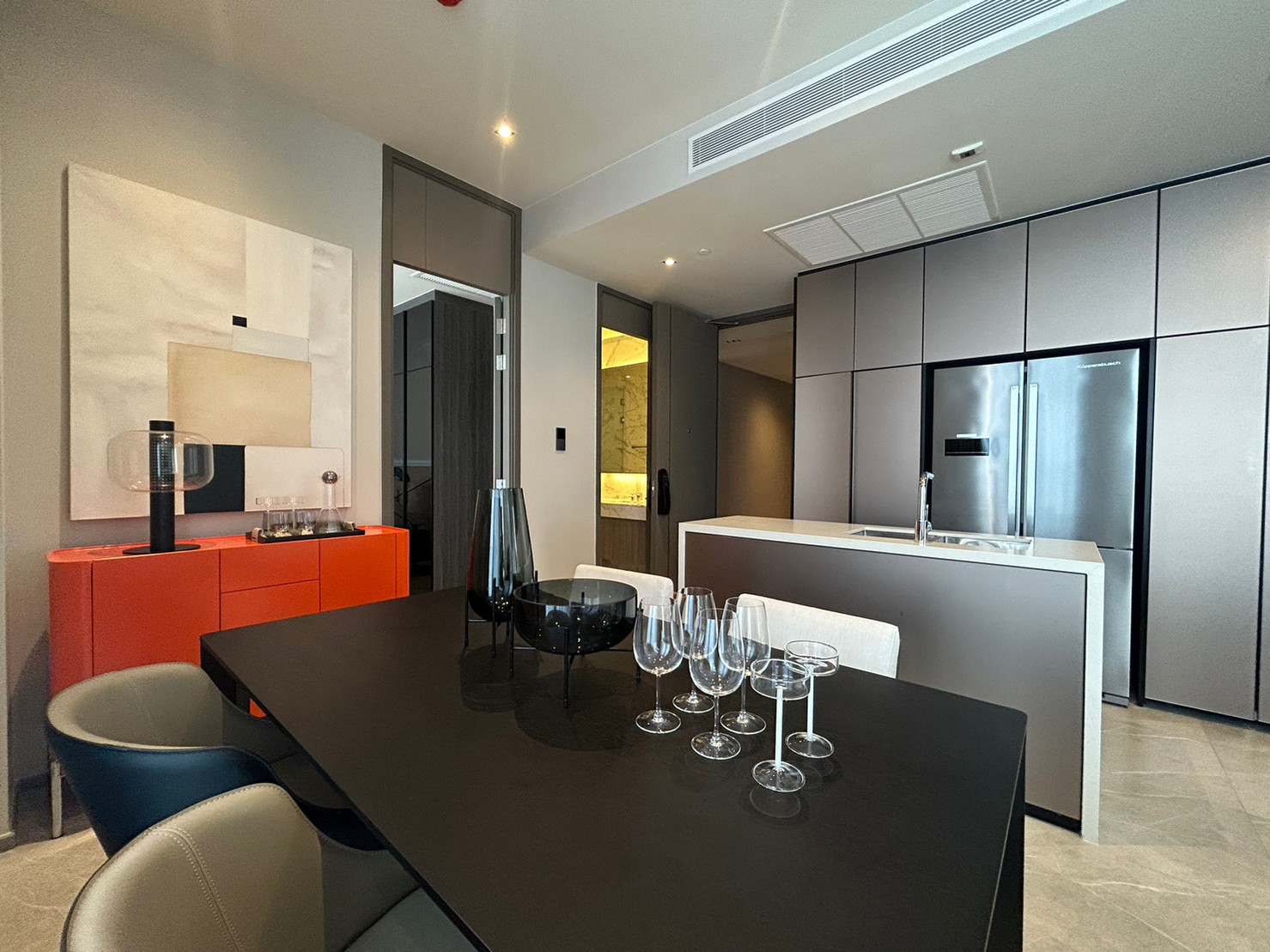 A super-luxury high-rise condominium, is potentially situated in the CBD area, allowing the residents to enjoy an urban lifestyle of its finest. Moreover, the project offers easy access to Terminal 21, Central Plaza, Grand Rama 9, Fortune Town, The Grand Rama 9, and public transportation with only 240 meters away from the Makkasan Airport Link and a few minutes to Rama 9 MRT station.